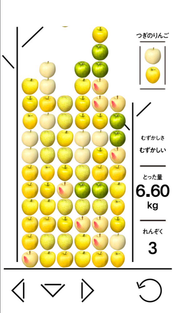 「赤いリンゴ」版の難易度は「やさしい」4種「ふつう」5種「むずかしい」8種のリンゴが出てくる。